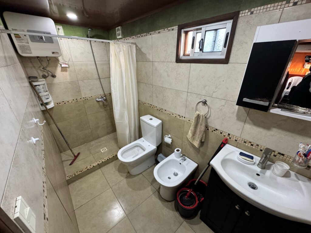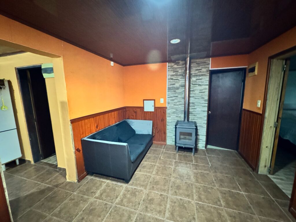 La vivienda cuenta con un acogedor living con estufa a leña, dos dormitorios, baño, y una cómoda cocina-comedor. Hacia el fondo, ofrece un amplio patio con alero y explanada de hormigón, además de ingreso lateral para mayor funcionalidad. Construcción tradicional, techo de hormigón, aberturas de aluminio, pisos de cerámicas.