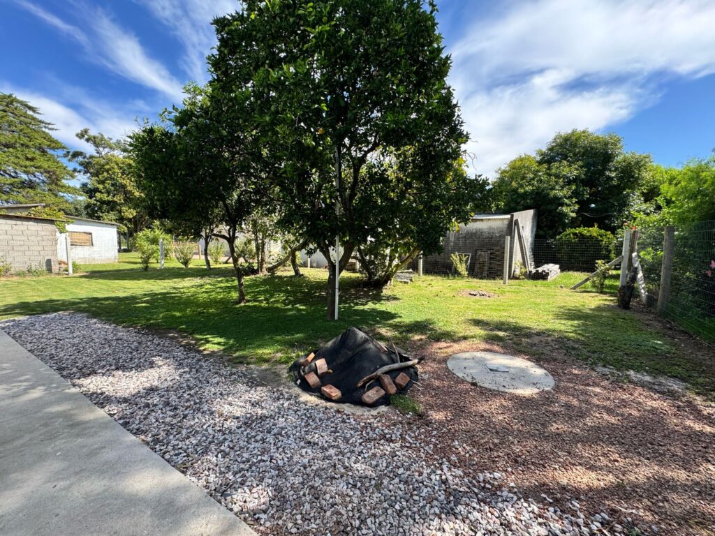 En el exterior, el amplio patio ofrece un espacio inigualable, rodeado de árboles frutales que brindan sombra y frescura. Además, el parrillero es ideal para disfrutar al aire libre en cualquier época del año. Todo el terreno se encuentra cercado, garantizando privacidad y seguridad.